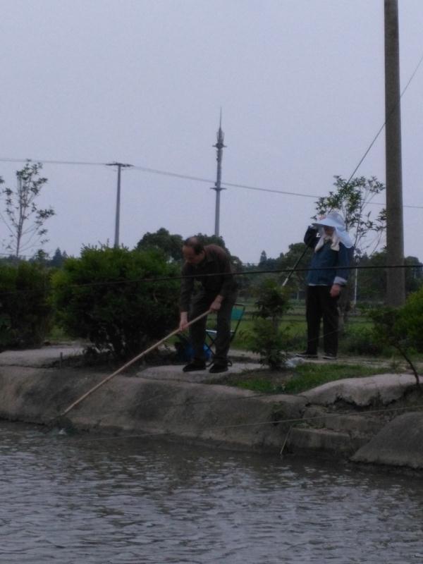 在今天钓鱼过程中,就在离我不远的地方,有一位年近八十的老太太特引入注意,只见她不停的把一条条大鳊鱼钓起来,在我们这里就钓了十几条,大家都称她钓鱼高手。这里我要为我们的吴小竹、朱月星两位老师点个赞,老太太毕竟年事已高,有时候一个人要把钓到的鱼用网抄上来比较吃力,我们的吴小竹、朱月星就主动地上去用渔网帮她把鱼抄上来。这个老太太同她丈夫一起来钓鱼的(她丈夫在另一边钓鱼),他们说年老外出旅游有困难,就用钓鱼来替代旅游,他们这种对晚年生活充满信心、乐观应对的精神值得我们学习!