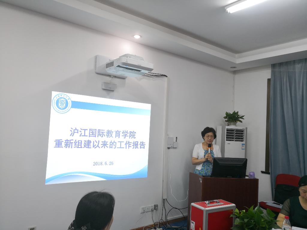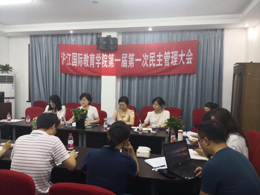 2018年6月26日下午,沪江国际教育学院第一届第一次民主管理大会在学院会议室成功召开。此次会议主要听取学院常务副院长、直属党支部书记陈红作2017年学院工作报告和审议修订《沪江国际教育学院2018年考核和分配办法》。学院18位教职员工出席了会议,会议由学院工会主席李花主持。